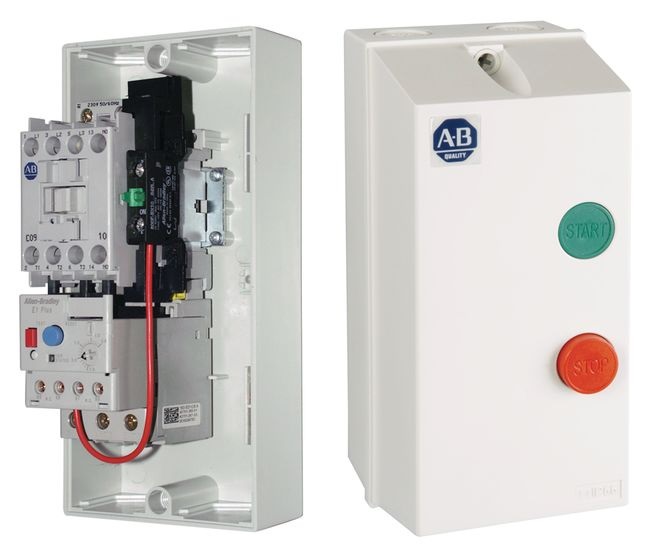 Пускатели закрытого типа прямого пуска 109-C имеют контактор 100-C (9–23/43 A) и электронные реле защиты двигателя от перегрузки в литом пластмассовом корпусе (IP66).