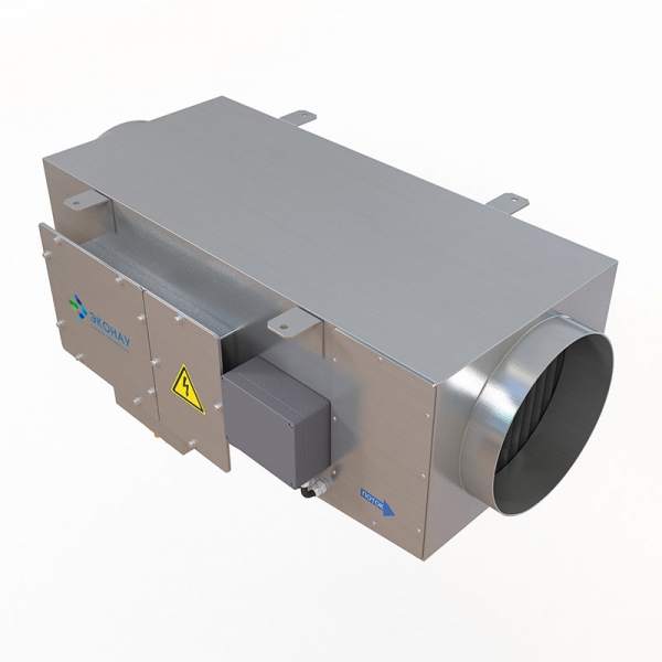 Производительность: 36 литра в час. Изготавливается под заказ для вентиляционных каналов любых форм и размеров. В комплекте с шкафом управления и датчиком влажности.